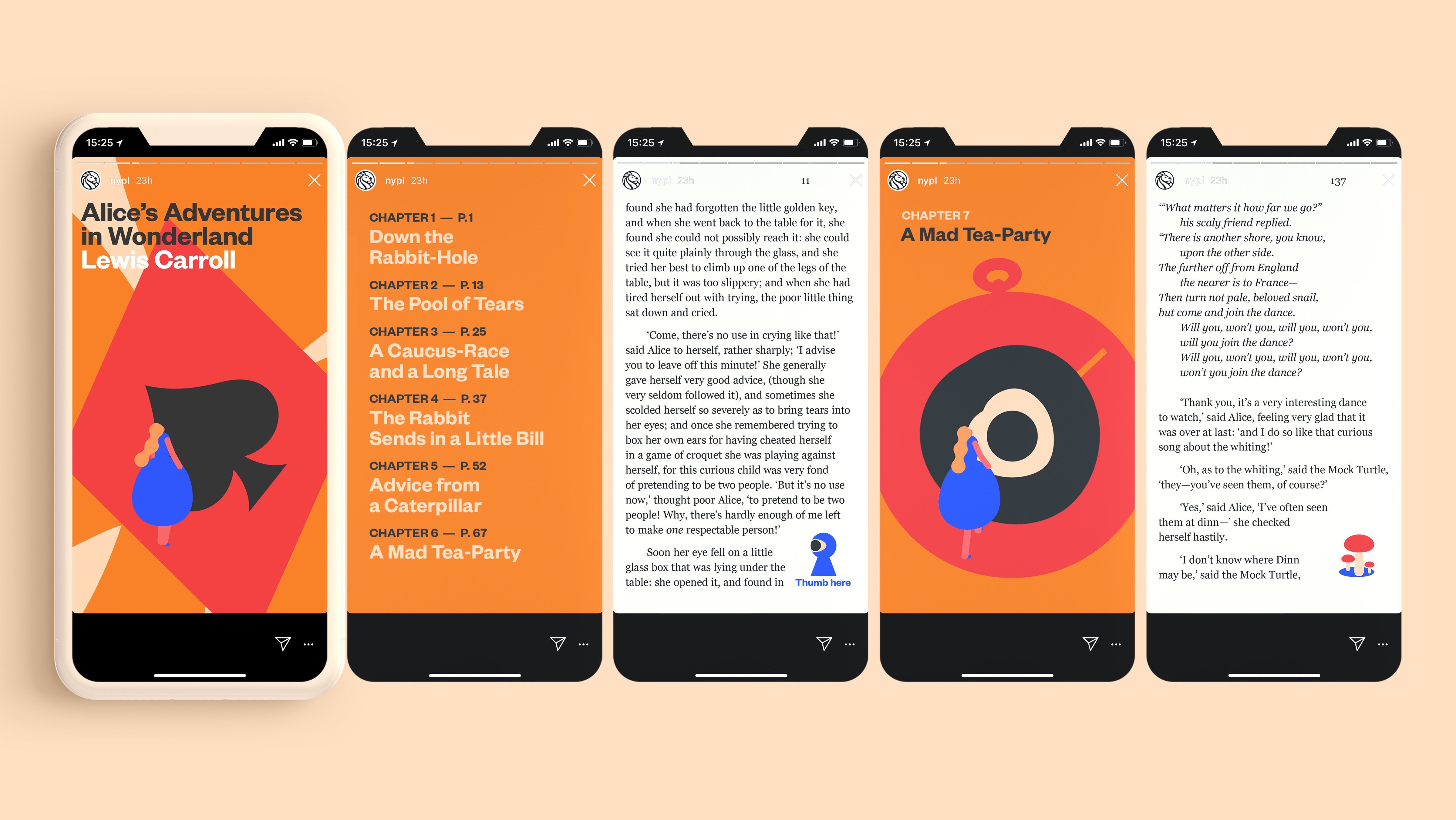 Insta Novels is a re-imagining of the way we read, bringing full-length novels to Instagram stories, through the NYPL Instagram account. The New York Public Library worked with Mother to hack a familiar format with the goal of putting literature in the hands of as many readers as possible.